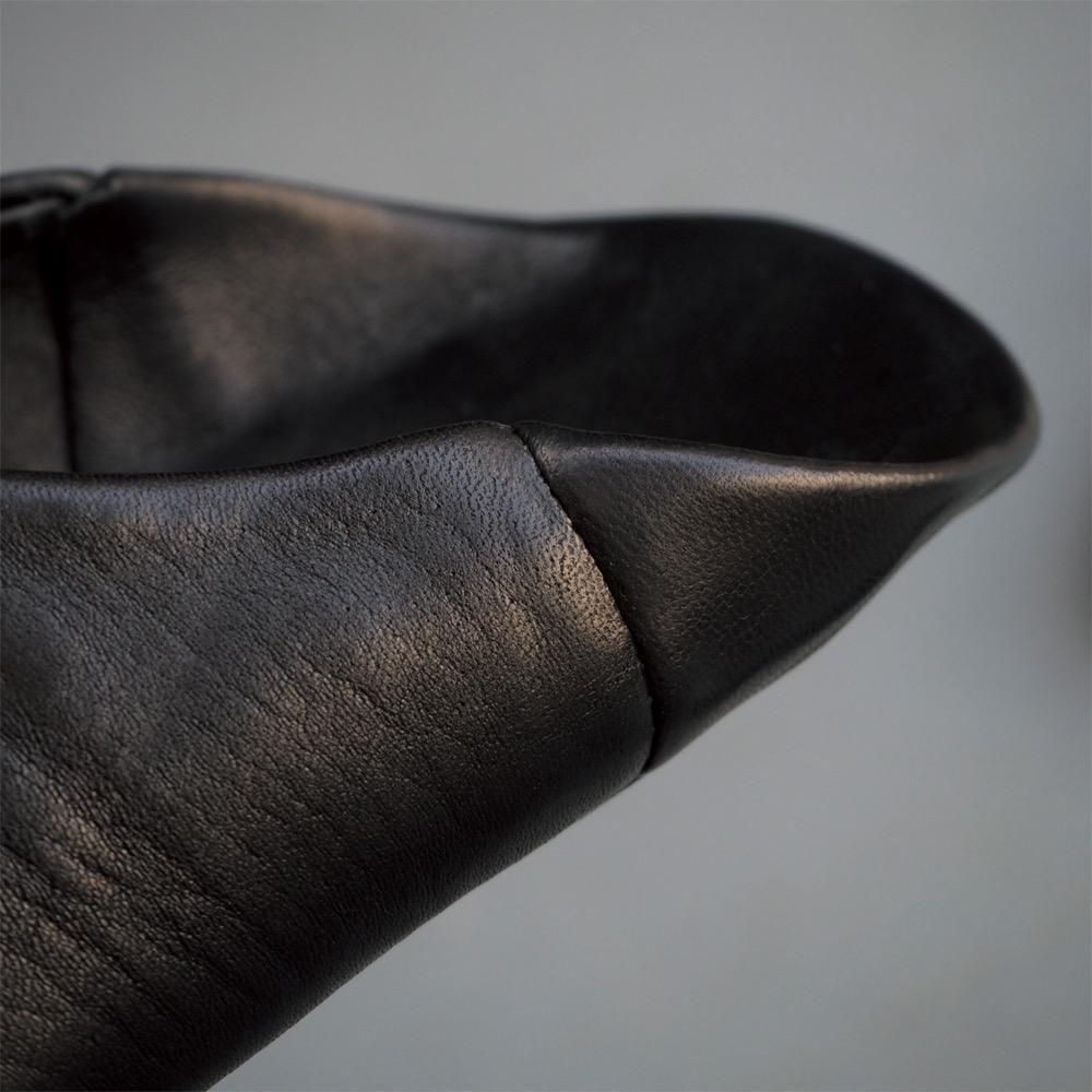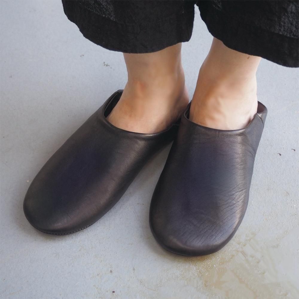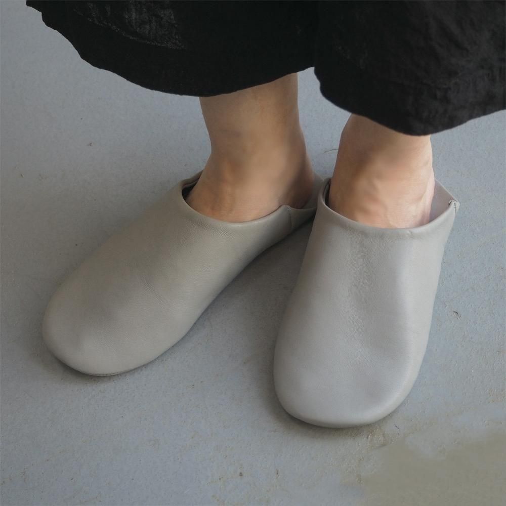 良質な山羊革をミシン縫いで仕立てた、柔らかな履き心地のバブーシュ。