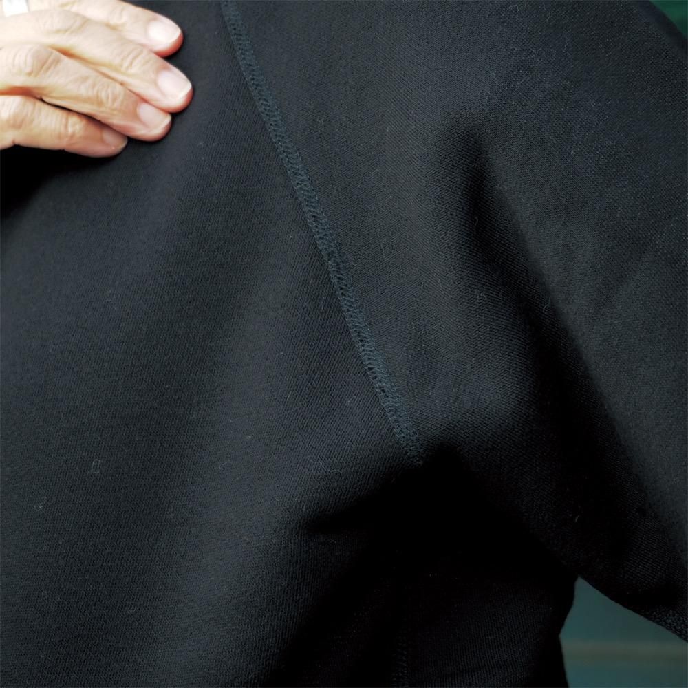 また、裏ループを長めに取り、やや掻くことで微起毛の暖かく柔らかい風合いを実現。