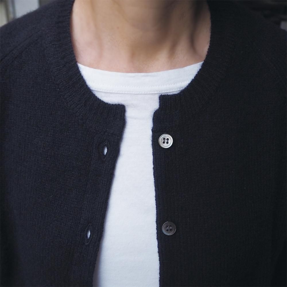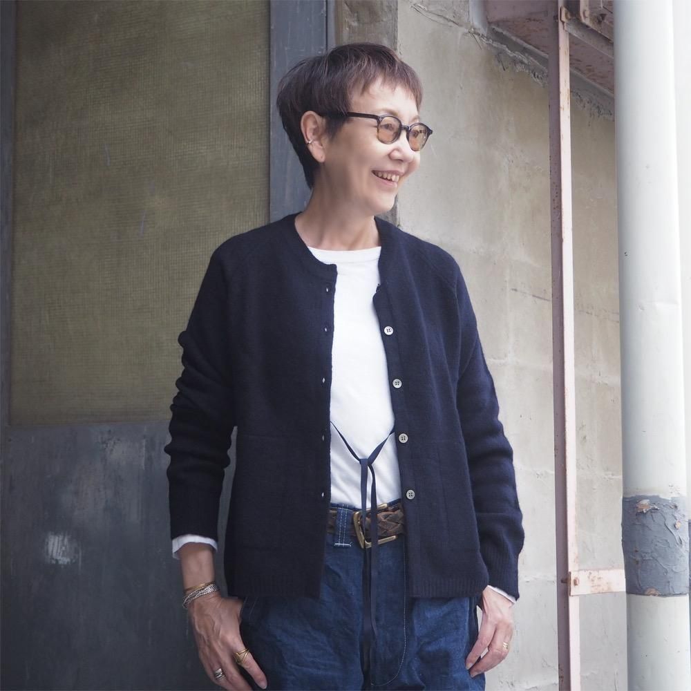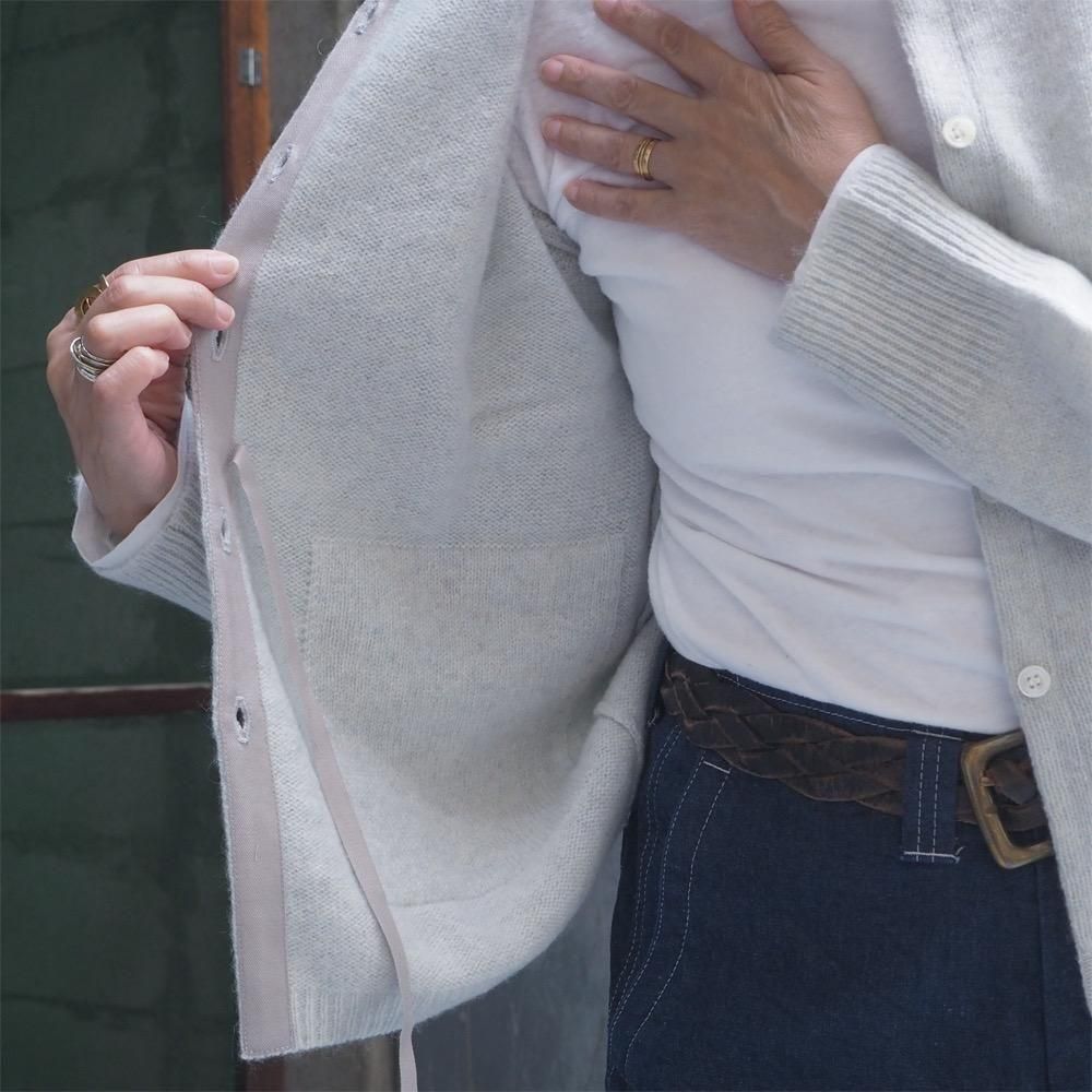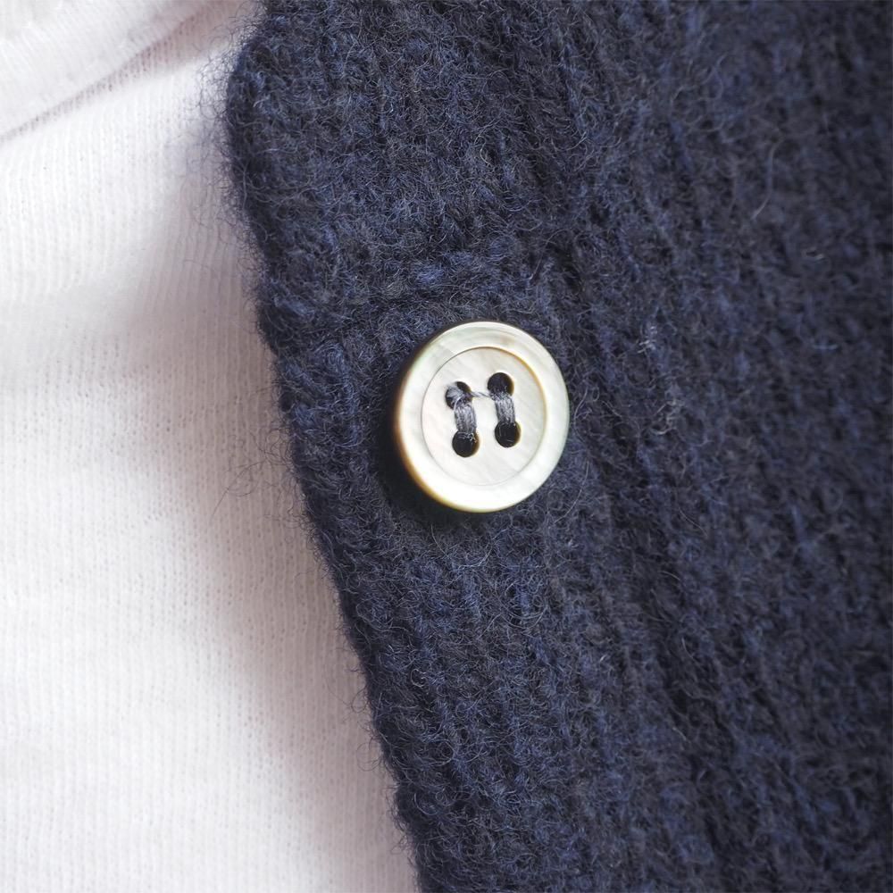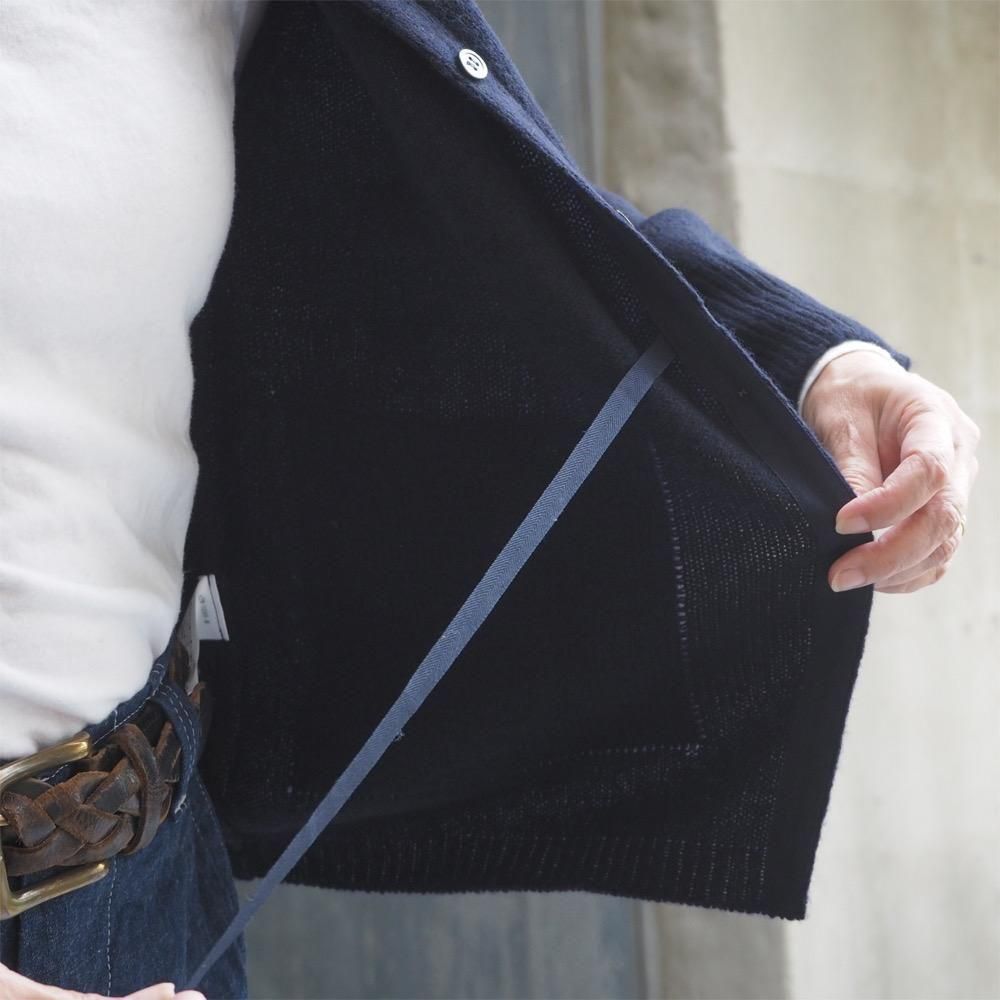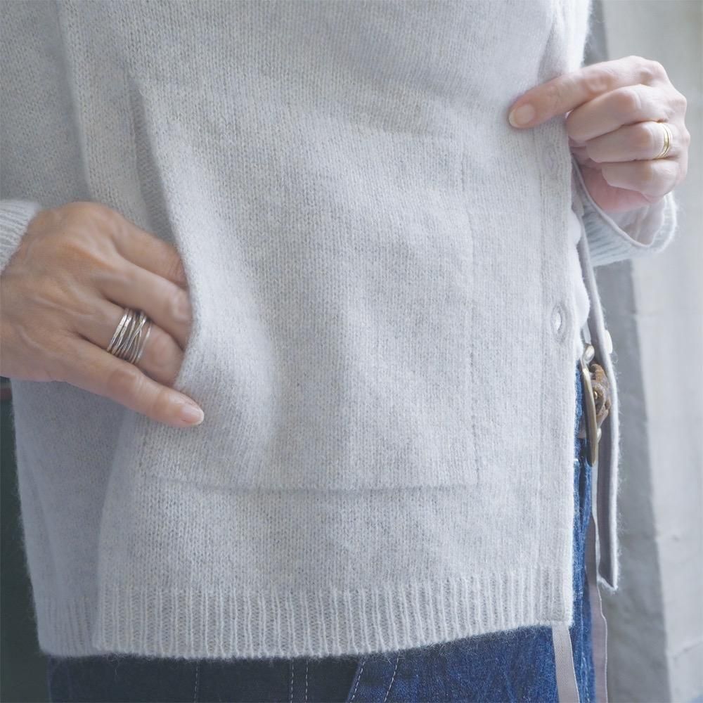 カーディガンには珍しい脇ポケットも特徴の一つ。