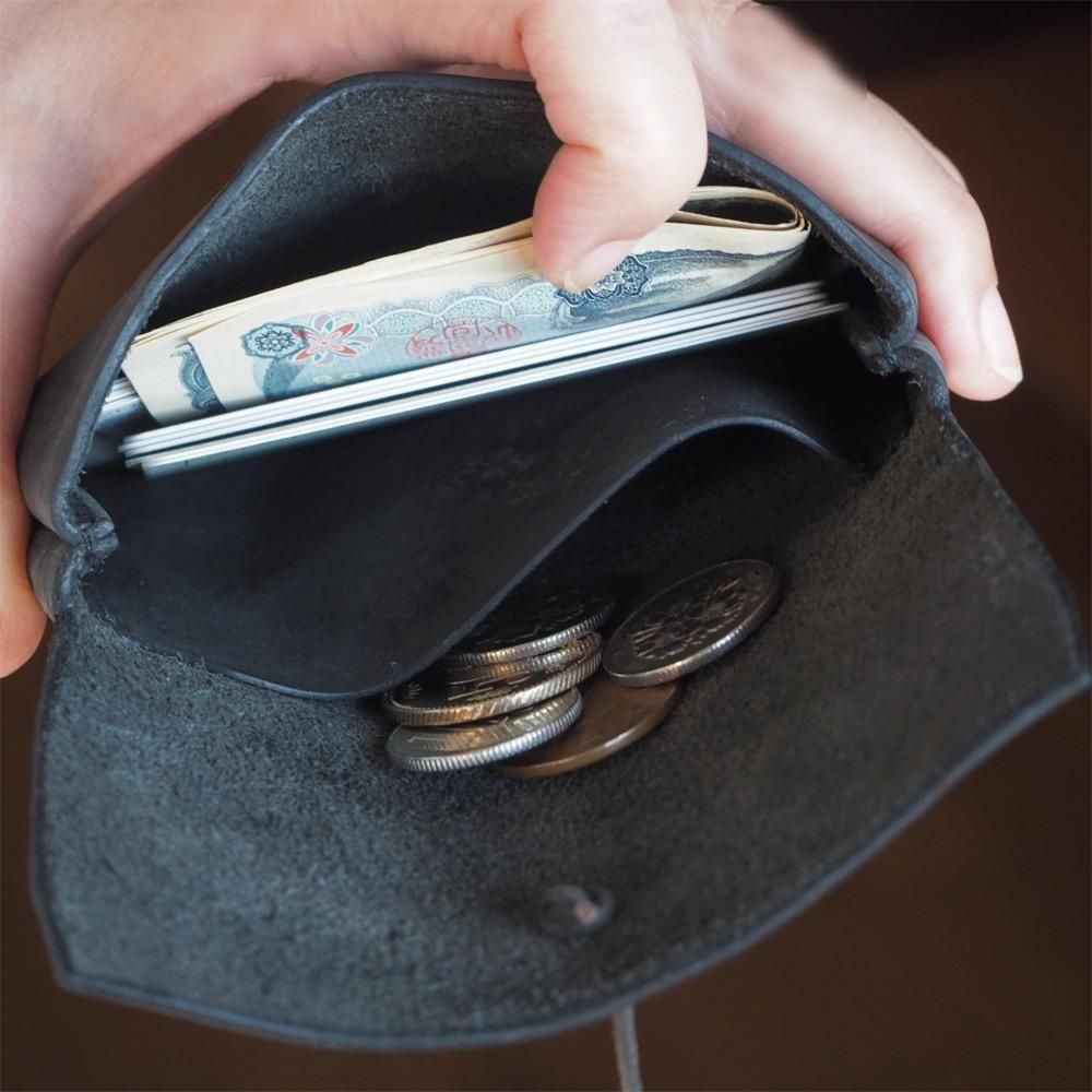 小銭を入れられるポケットと、お札とカードを収納できるポケットがあります。